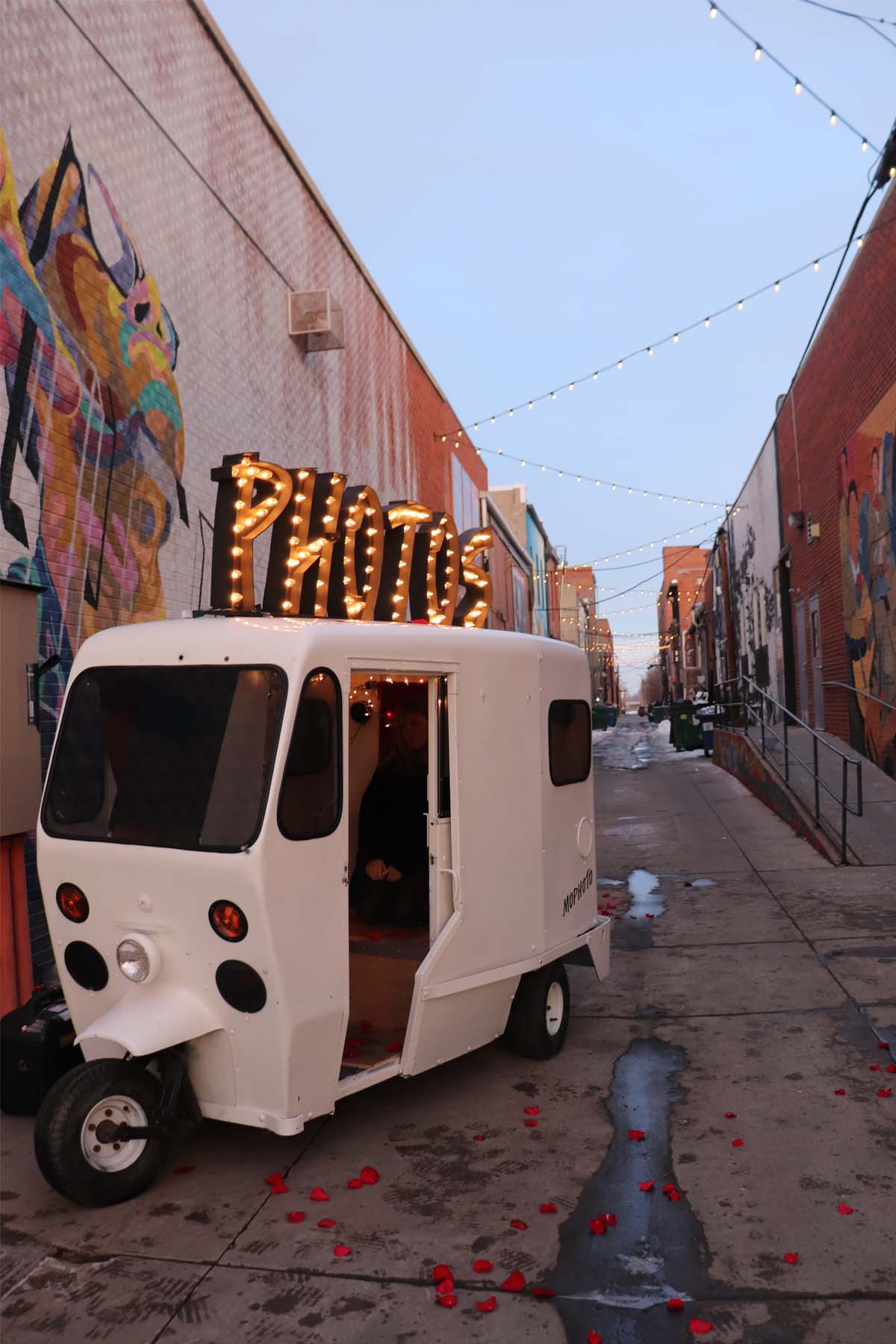Meet our three-wheeled mail cart from the 60's has transformed into a party hungry photo machine, ready for any and every event.